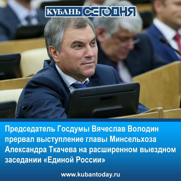 Председатель Госдумы Вячеслав Володин прервал выступление главы Минсельхоза Александра Ткачева на расширенном выездном заседании «Единой России», когда тот говорил о власти и государственных структурах. Об этом во вторник, 14 марта, сообщает корреспондент «Ленты.ру».