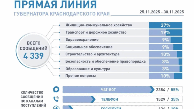 Анализируя географию обращений, можно выделить самые активные муниципалитеты. В перерасчете на тысячу жителей, наибольшее количество обращений поступило из Анапы, Темрюкского района, Краснодара, Туапсинского муниципального округа и Динского района, пишет пресс-служба администрации Краснодарского края.